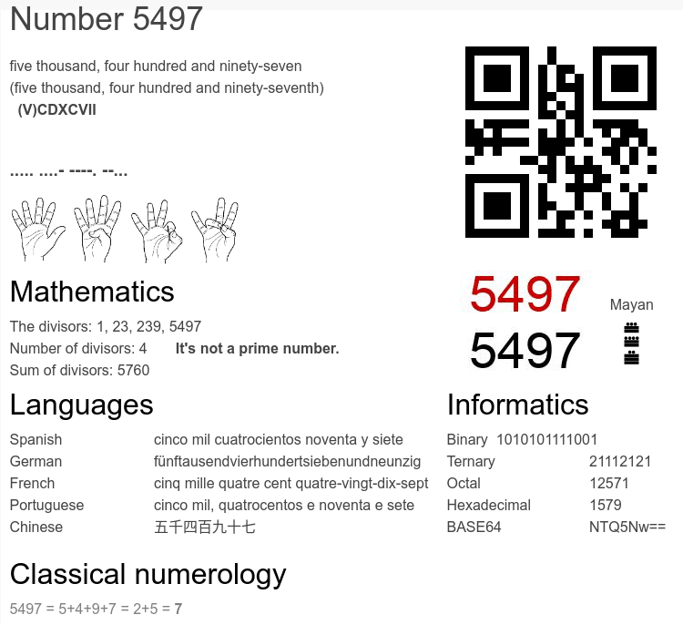 If you know something interesting about the 5497 number that you did not find on this page, do not hesitate to write us here.