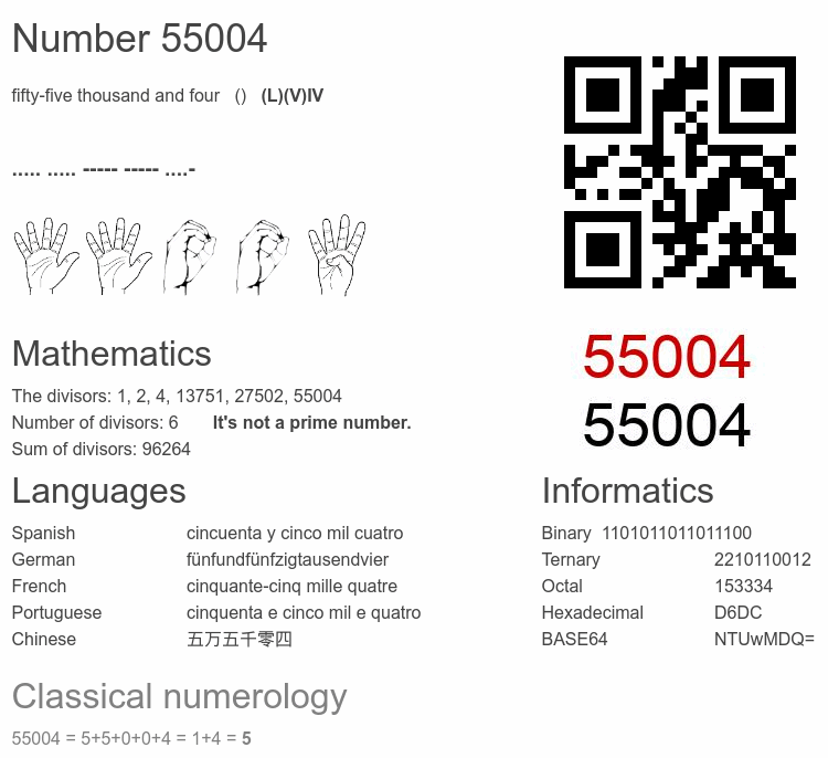 Number 55004 facts