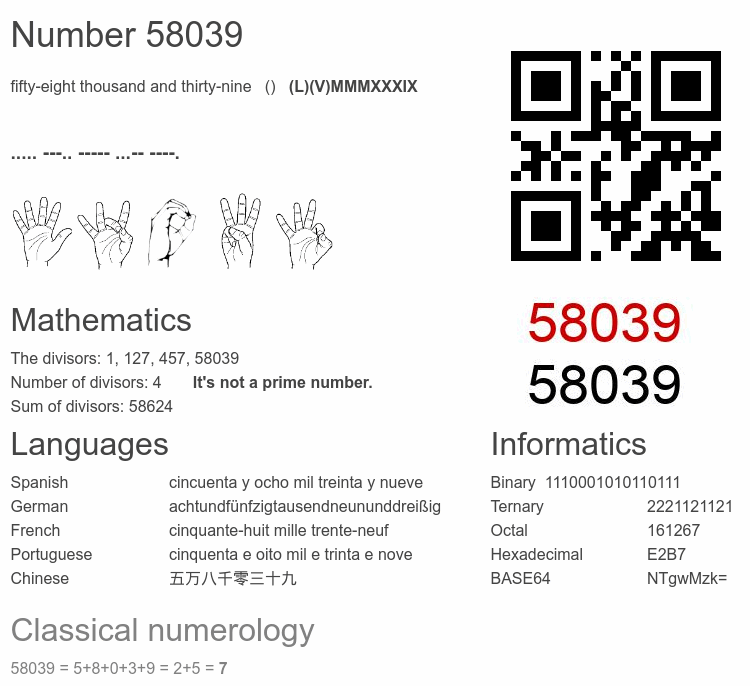 Number 58039 infographic