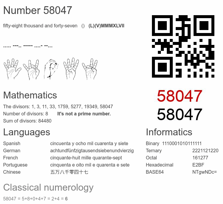 If you know something interesting about the 58047 number that you did not find on this page, do not hesitate to write us here.