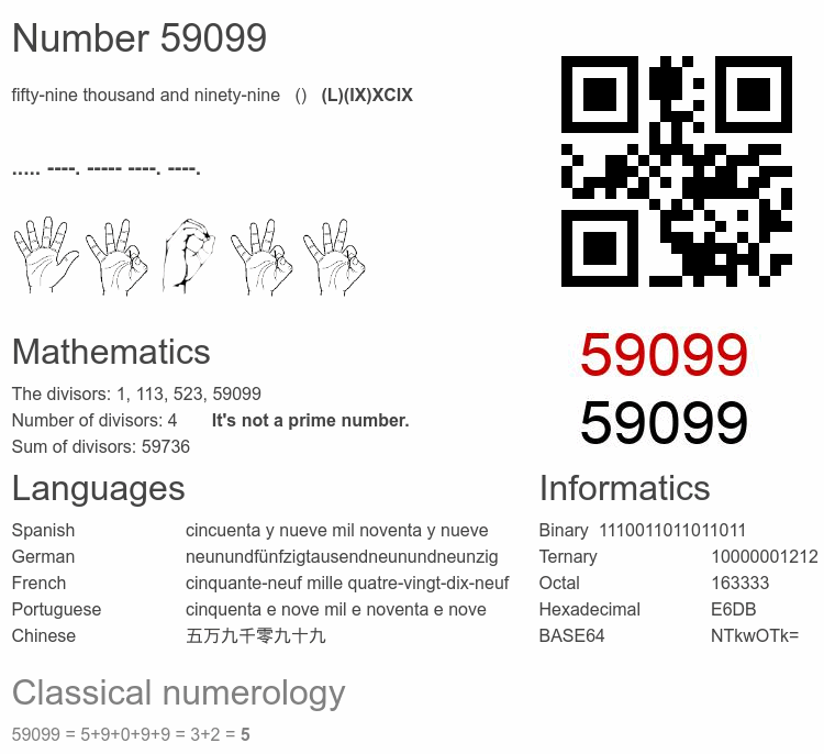 Number 59099 infographic