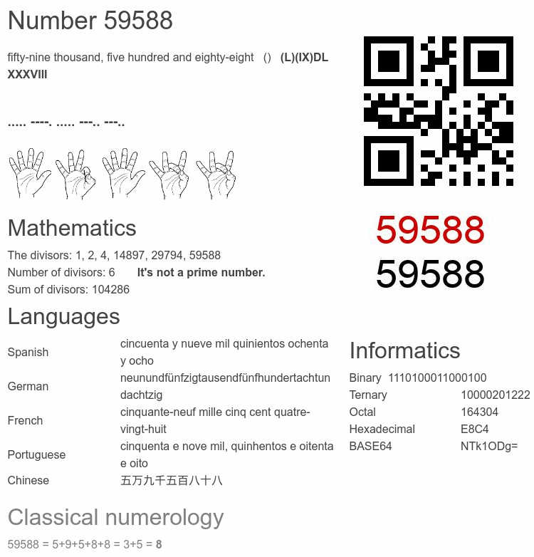59588 can be written as "fifty-nine thousand, five hundred and eighty-eight".