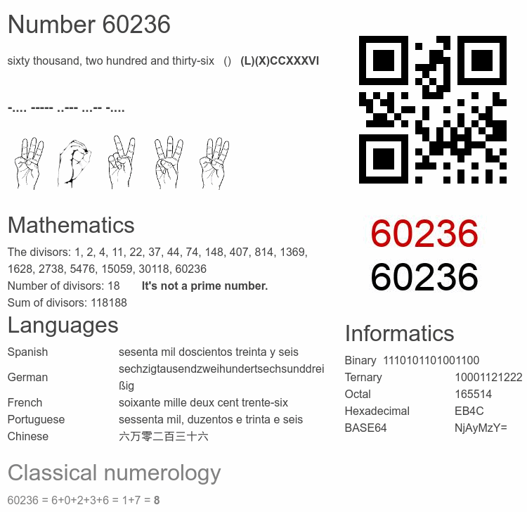 Frequently asked questions about the number 60236