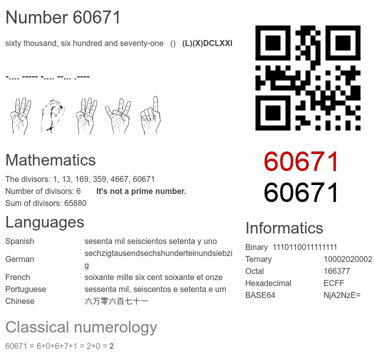 Number 60671 infographic