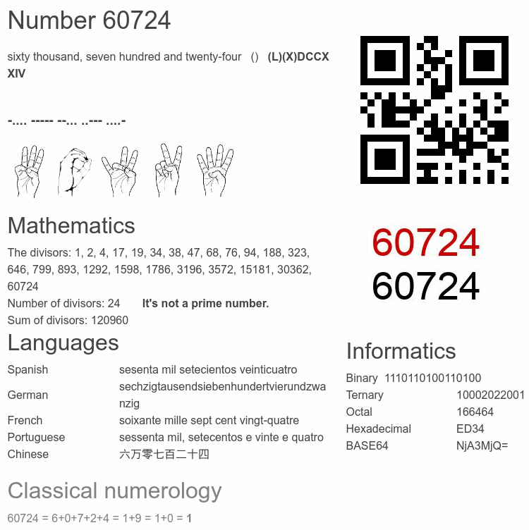 | Chinese: | 🔊 (数 60 724) | 六万零七百二十四 |