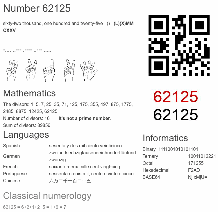 Number 62125 infographic