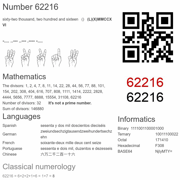 Number 62216 facts