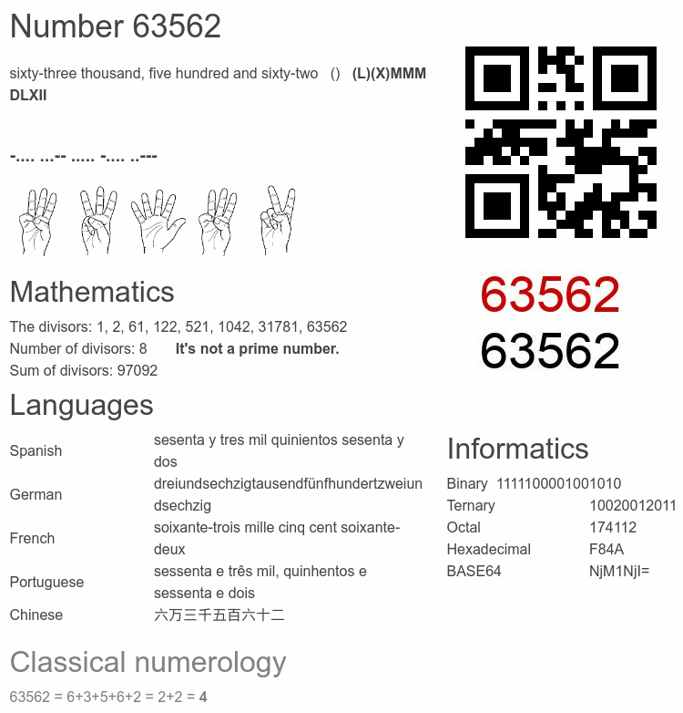 Number 63562 facts