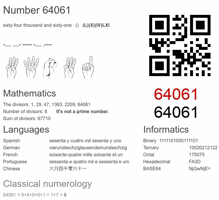 Number 64061 infographic