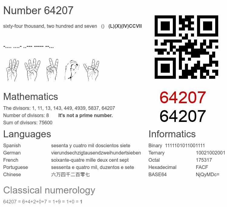 Interesting facts about the number 64207