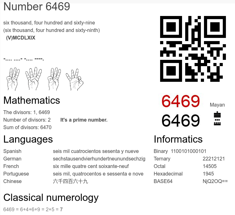 Number 6469 infographic