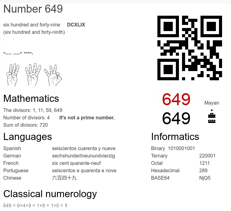 If you know something interesting about the 649 number that you did not find on this page, do not hesitate to write us here.