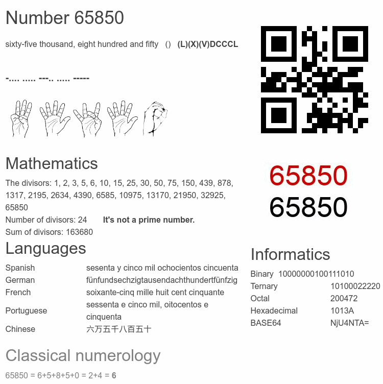 Number 65850 infographic