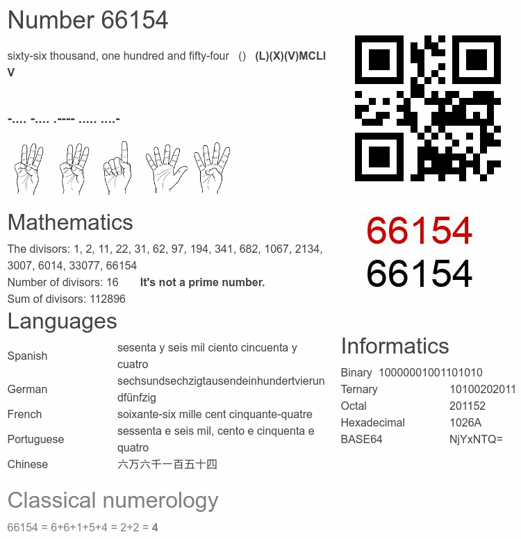 Number 66154 infographic