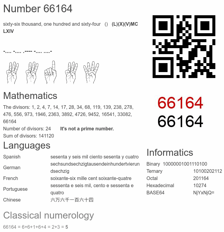 Number 66164 infographic