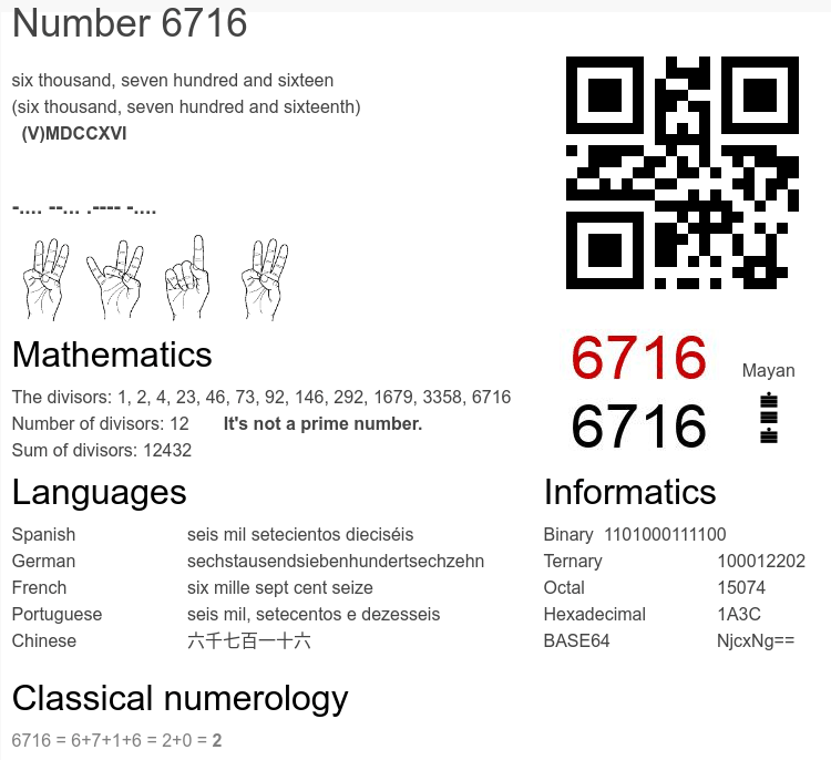 Frequently asked questions about the number 6716