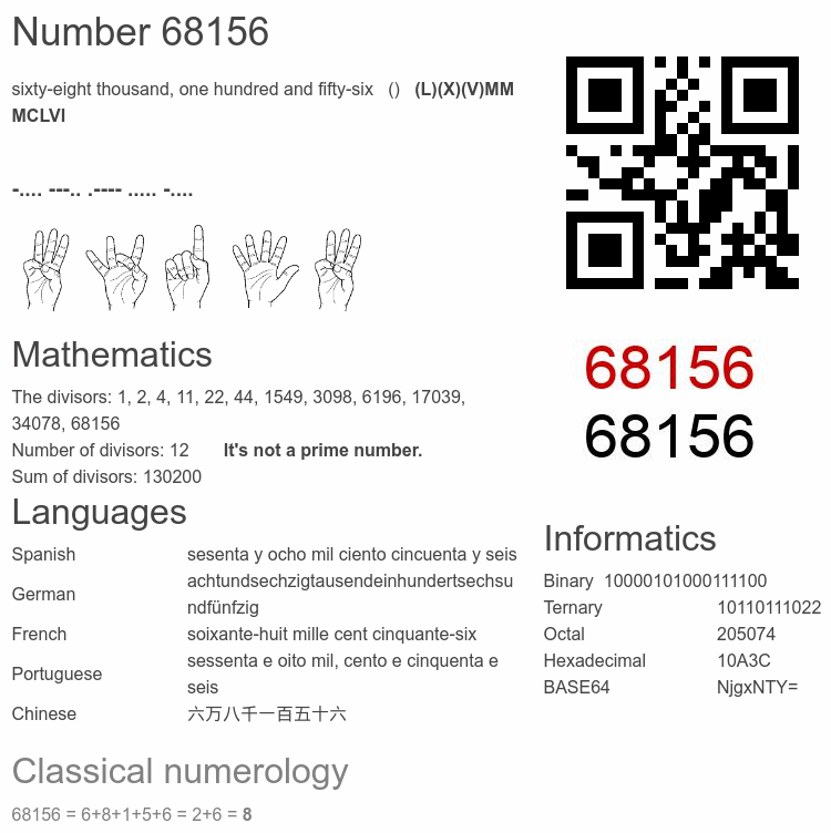 If you know something interesting about the 68156 number that you did not find on this page, do not hesitate to write us here.