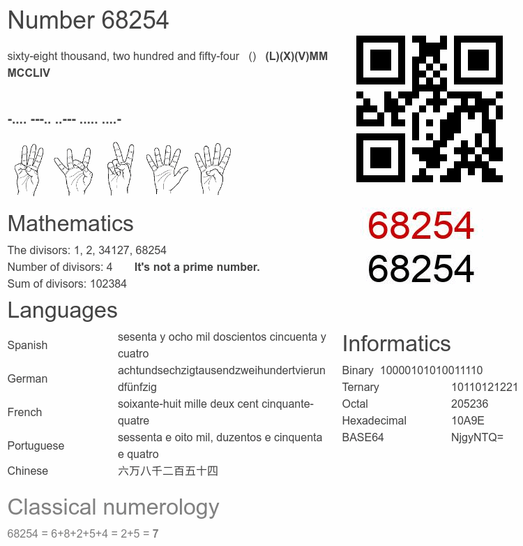 Number 68254 facts