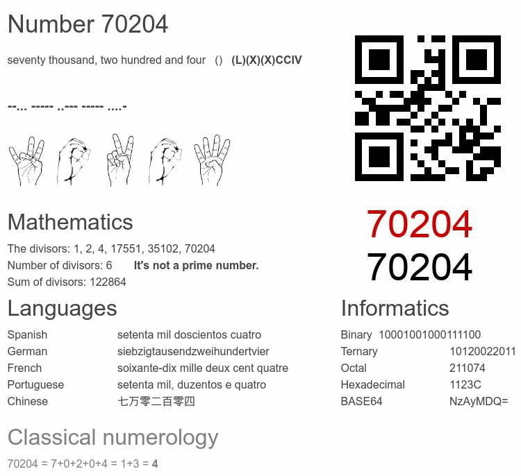 Number 70204 infographic