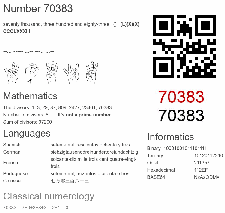 Interesting facts about the number 70383