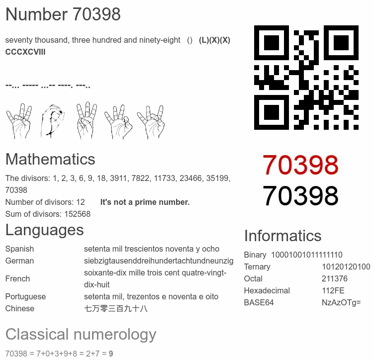 Number 70398 infographic