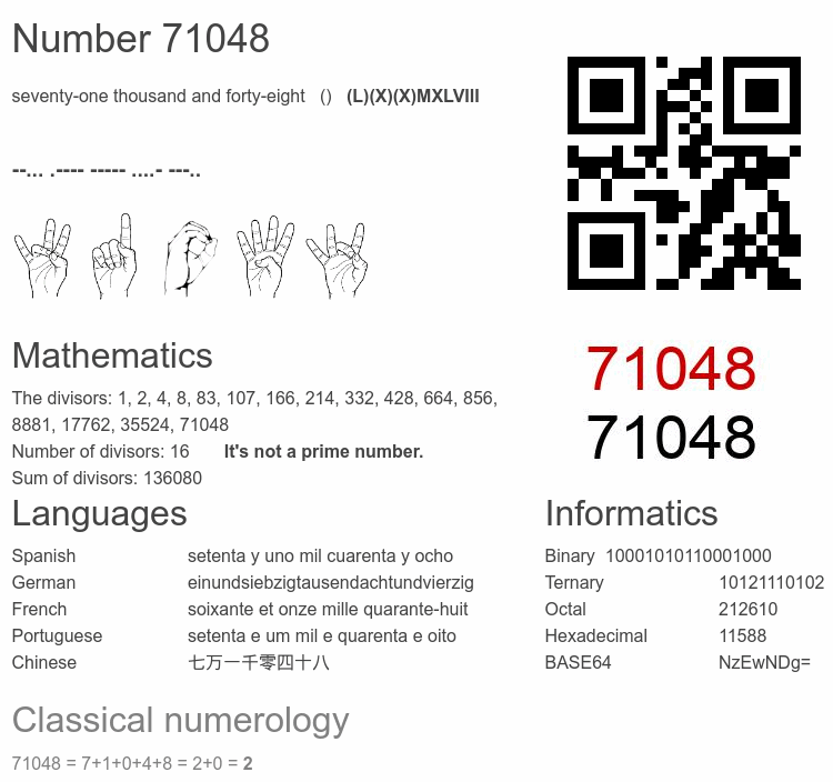 Number 71048 infographic