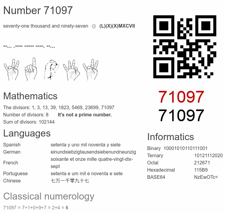 Number 71097 facts