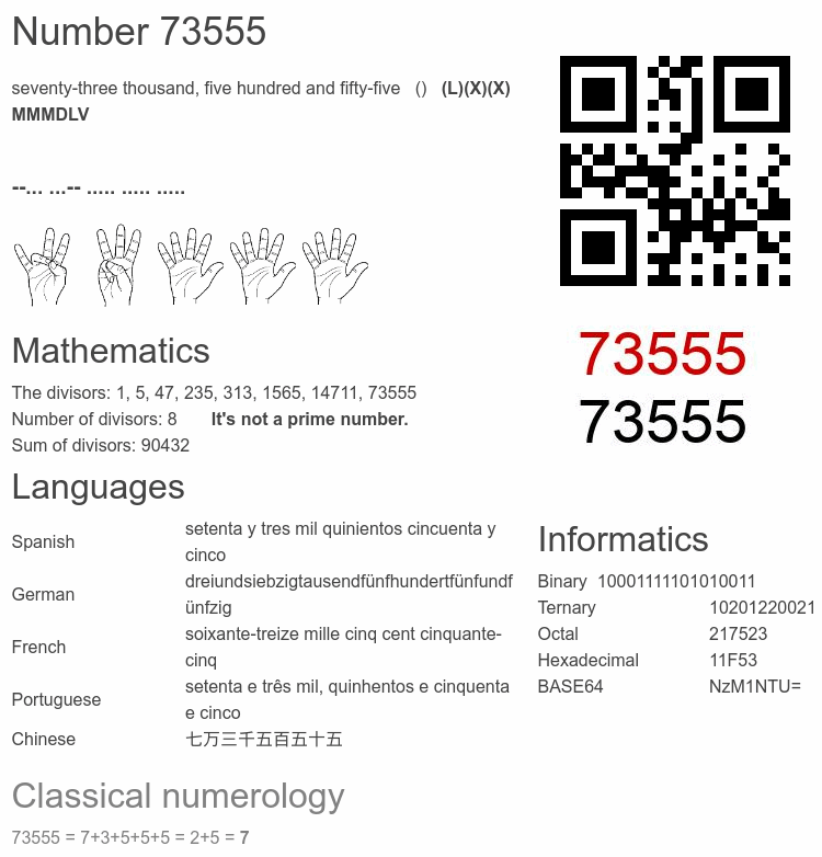 | Chinese: | 🔊 (数 73 555) | 七万三千五百五十五 |