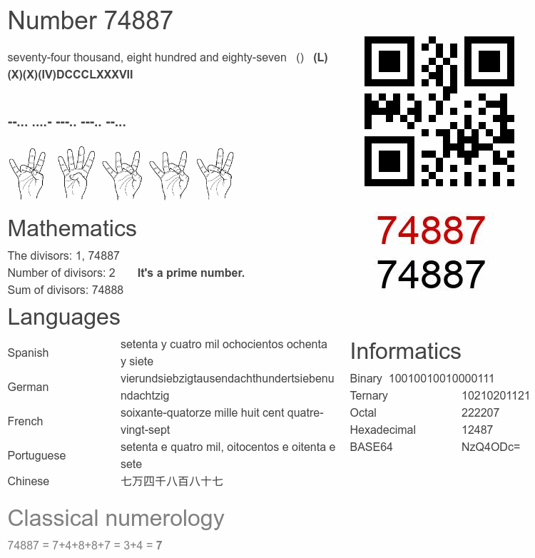 Number 74887 facts
