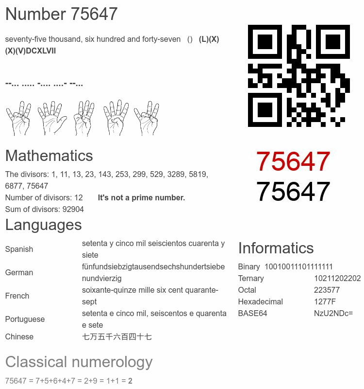 Interesting facts about the number 75647