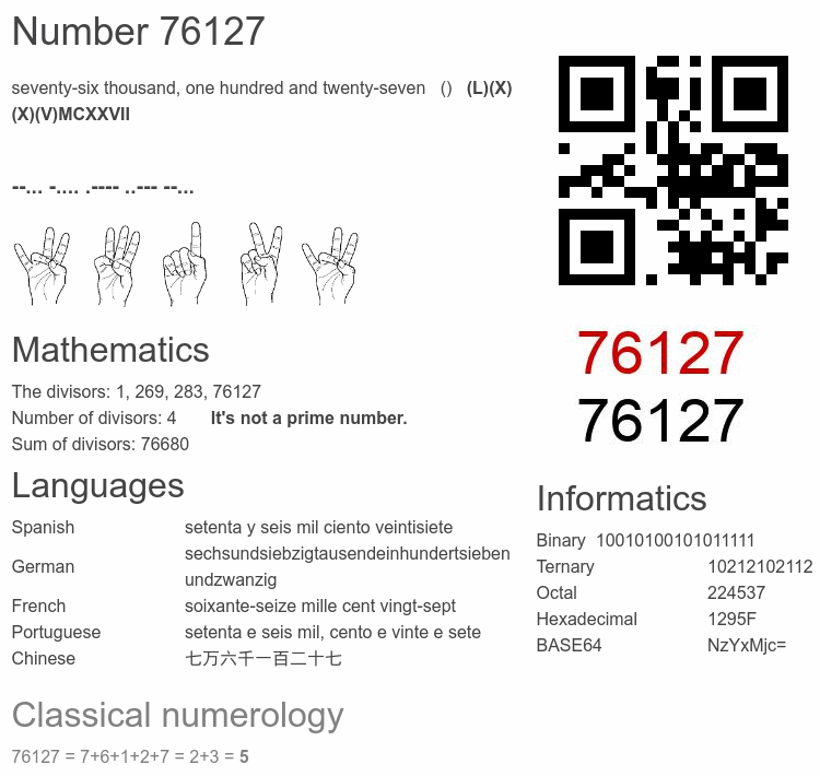 Number 76127 facts