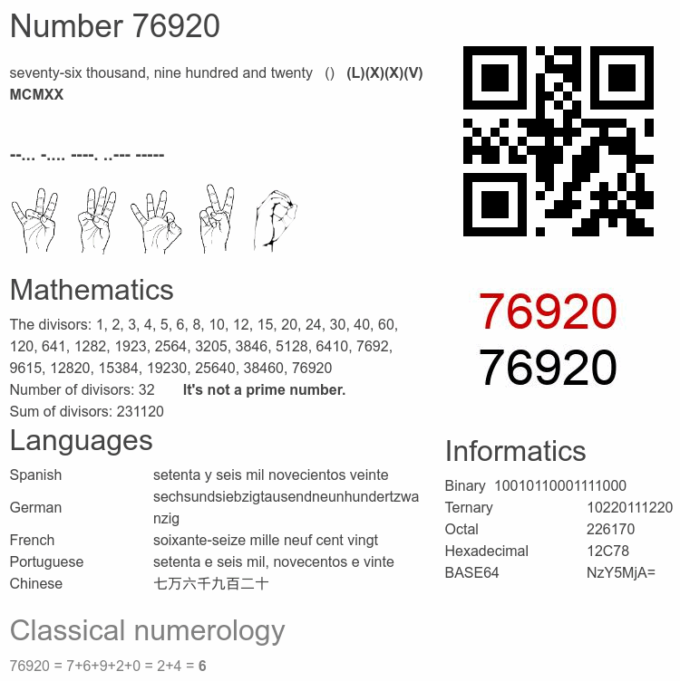 | Spanish: | 🔊 (número 76.920) | setenta y seis mil novecientos veinte |