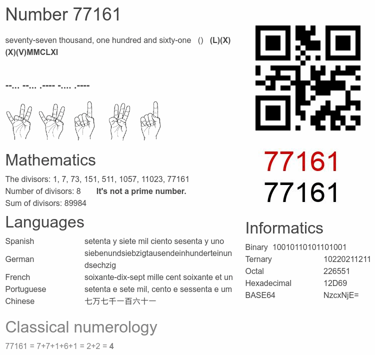 Number 77161 facts