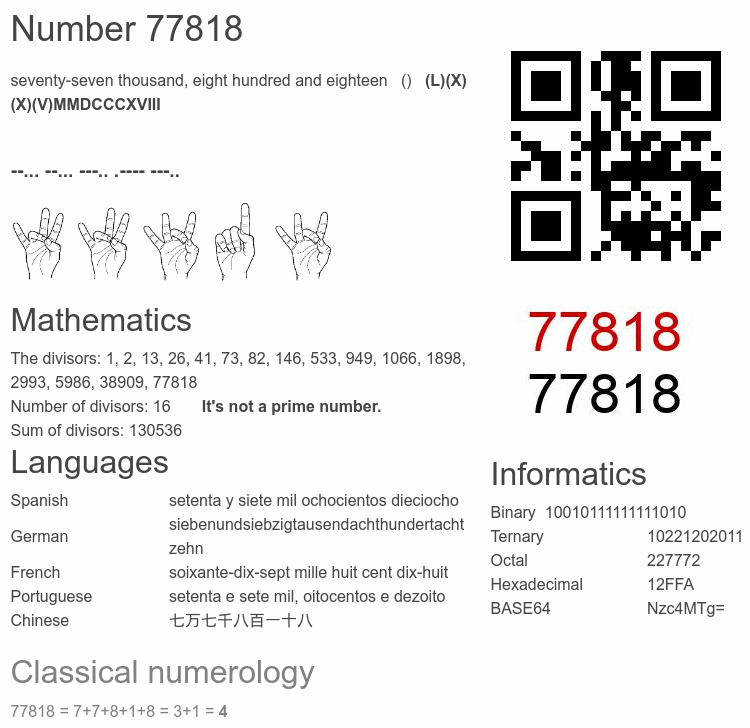 Number 77818 infographic
