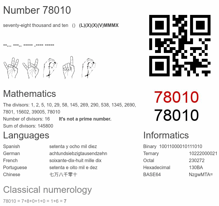 Number 78010 infographic