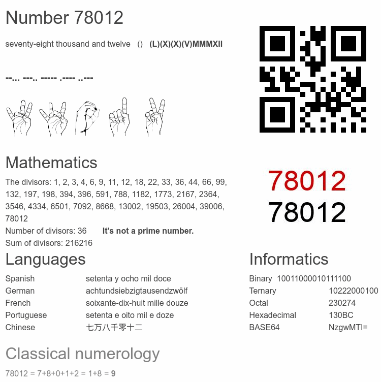 Number 78012 infographic