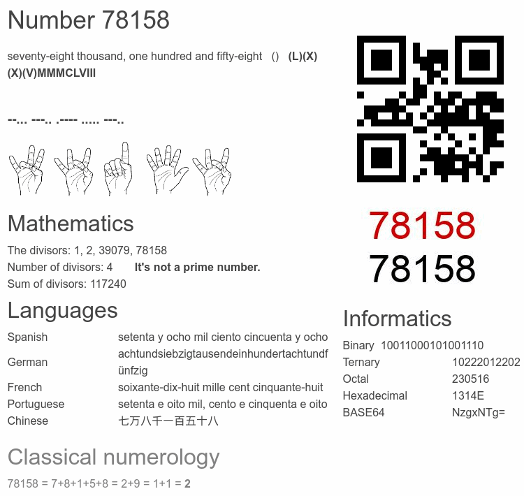 Number 78158 infographic
