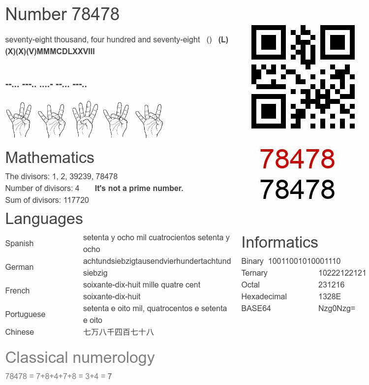 Interesting facts about the number 78478