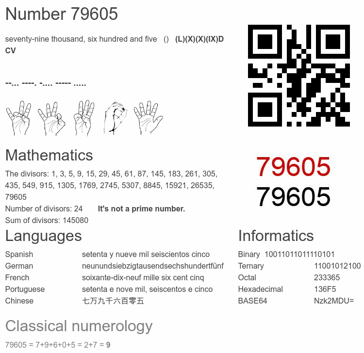 Number 79605 infographic