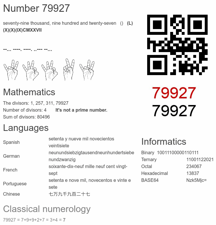 79927 can be written as "seventy-nine thousand, nine hundred and twenty-seven".