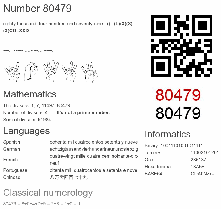 | Spanish: | 🔊 (número 80.479) | ochenta mil cuatrocientos setenta y nueve |