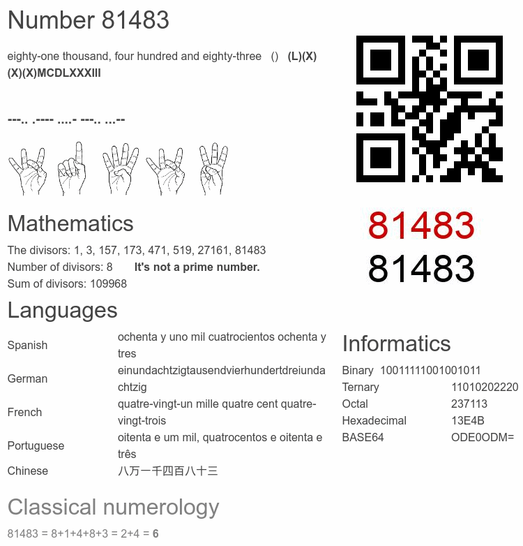 Number 81483 facts
