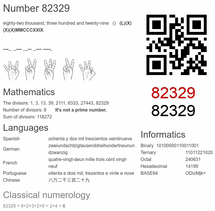 | Portuguese: | 🔊 (número 82 329) | oitenta e dois mil, trezentos e vinte e nove |