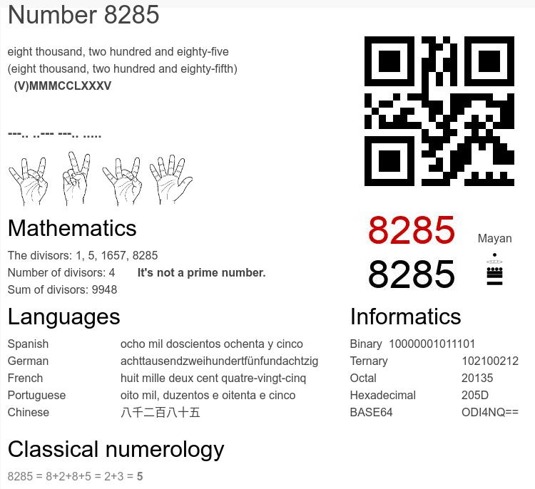 If you know something interesting about the 8285 number that you did not find on this page, do not hesitate to write us here.