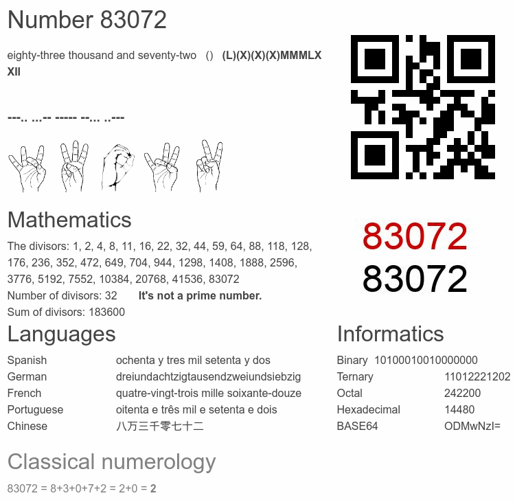 Number 83072 infographic