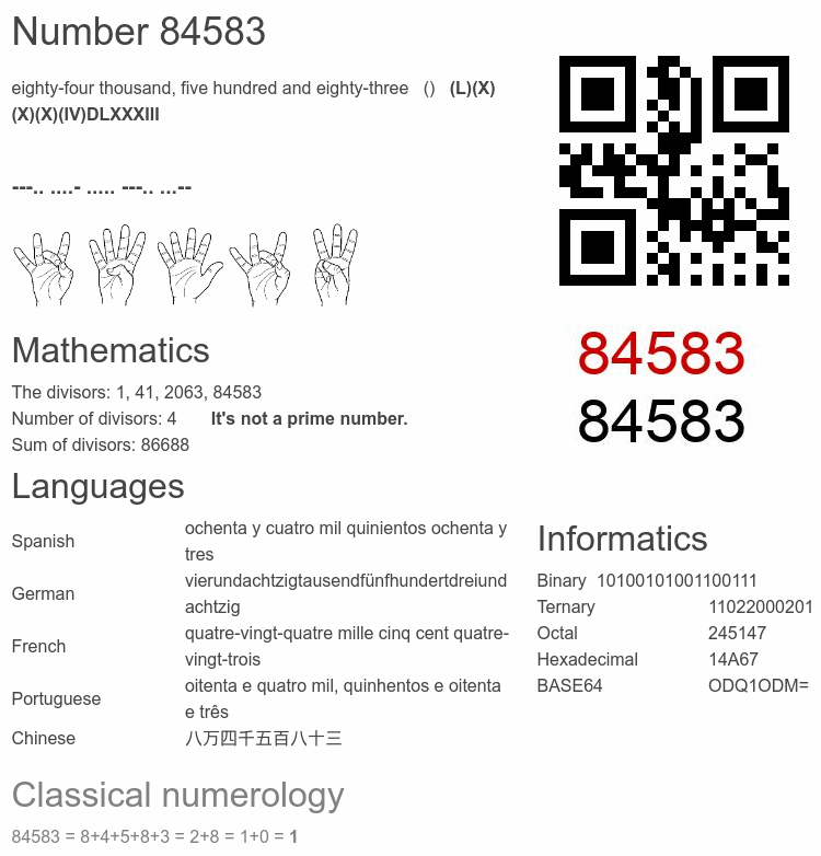 Number 84583 infographic
