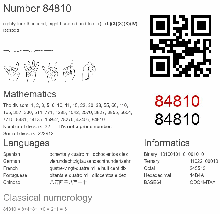 Number 84810 infographic