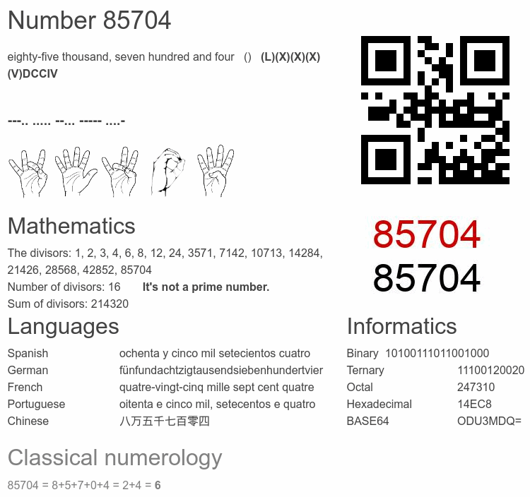 Number 85704 infographic