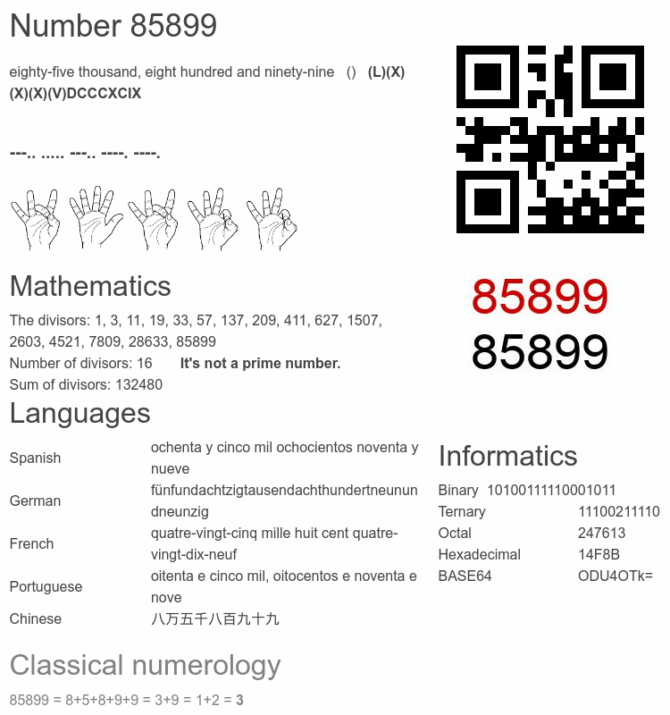 Number 85899 infographic