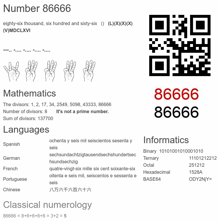 Number 86666 infographic